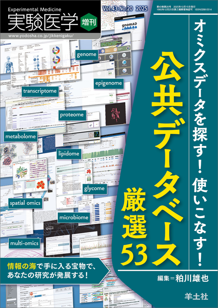 本増刊の第2章「オミクス研究のための公共データベース」において、当研究室は人工知能研究センターの富井博士とともに、Human Protein Atlas(HPA)の紹介記事を執筆しています。HPA の基盤情報から研究利用のポイントまで幅広く整理した内容となっていますので、ぜひご覧ください。